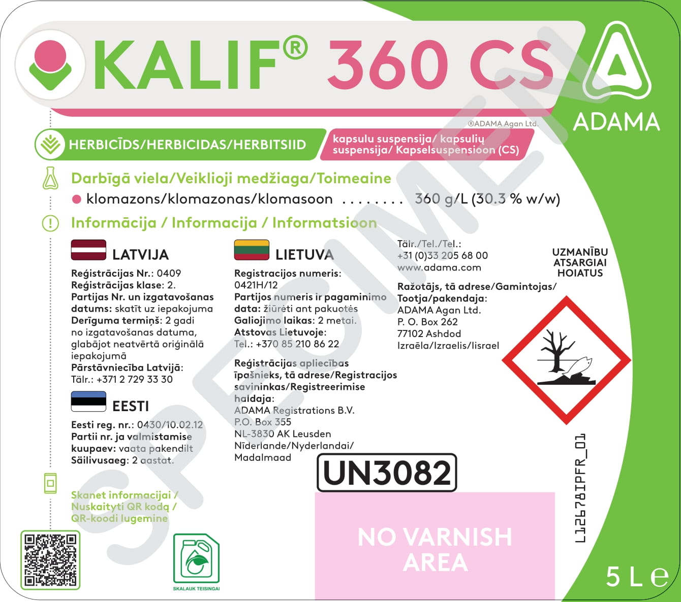 Kalif® 360 CS - mulla kaudu toimiv herbitsiid mitmesuguste kaheiduleheliste umbohtude tärkamiseelseks tõrjeks talirapsil, suvirapsil ja kartulil.