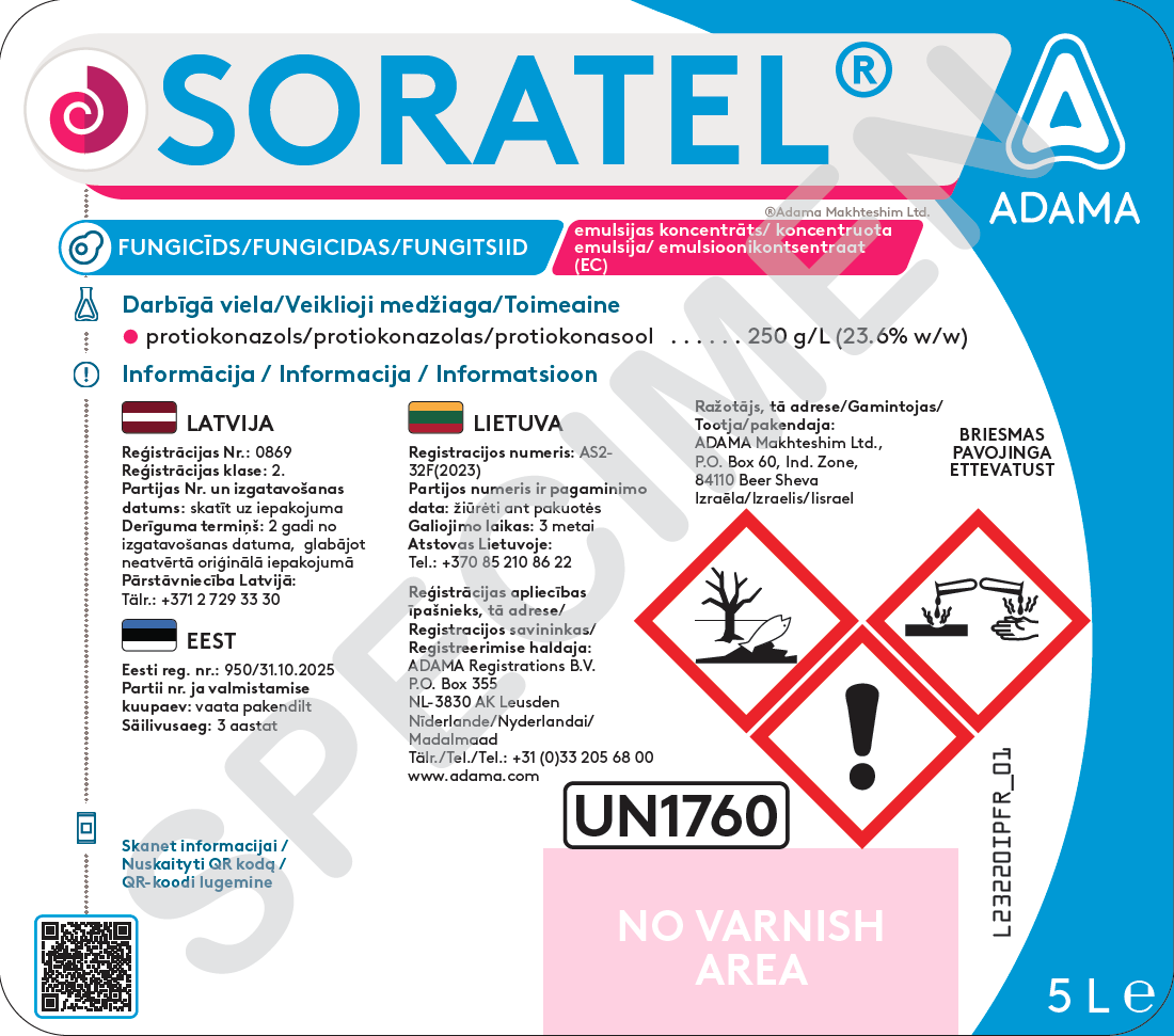 SORATEL ir plaša spektra sistēmas iedarbības aizsargājošs un ārstējošs fungicīds efektīvai lapu un vārpu slimību kontrolei, kā arī stublāju un pāksteņu