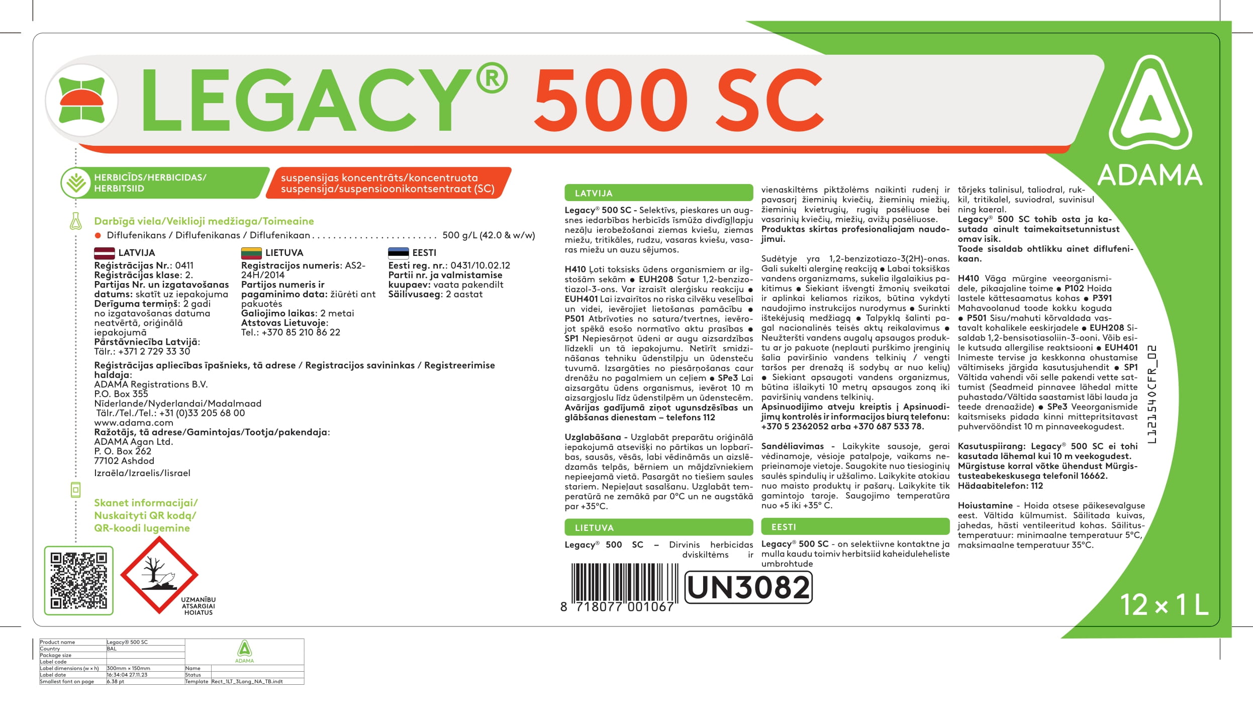 Pēc LEGACY 500 SC izsmidzināšanas uz augsnes virskārtas veidojas plēvīte, kas ir stingri piesaistīta augsnes daļiņām. Nezālēm dīgstot, tās izaug cauri šai apstrādātajai augsnes kārtai un uzņem herbicīdu caur saknēm, arī dīgstiem.