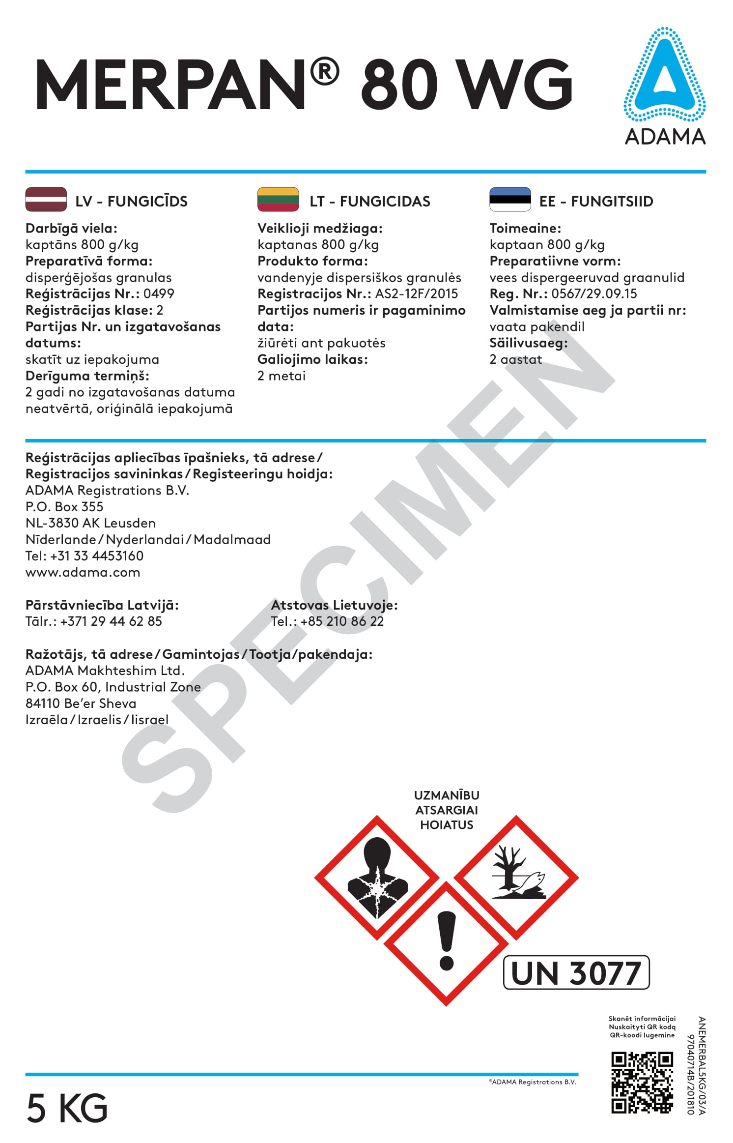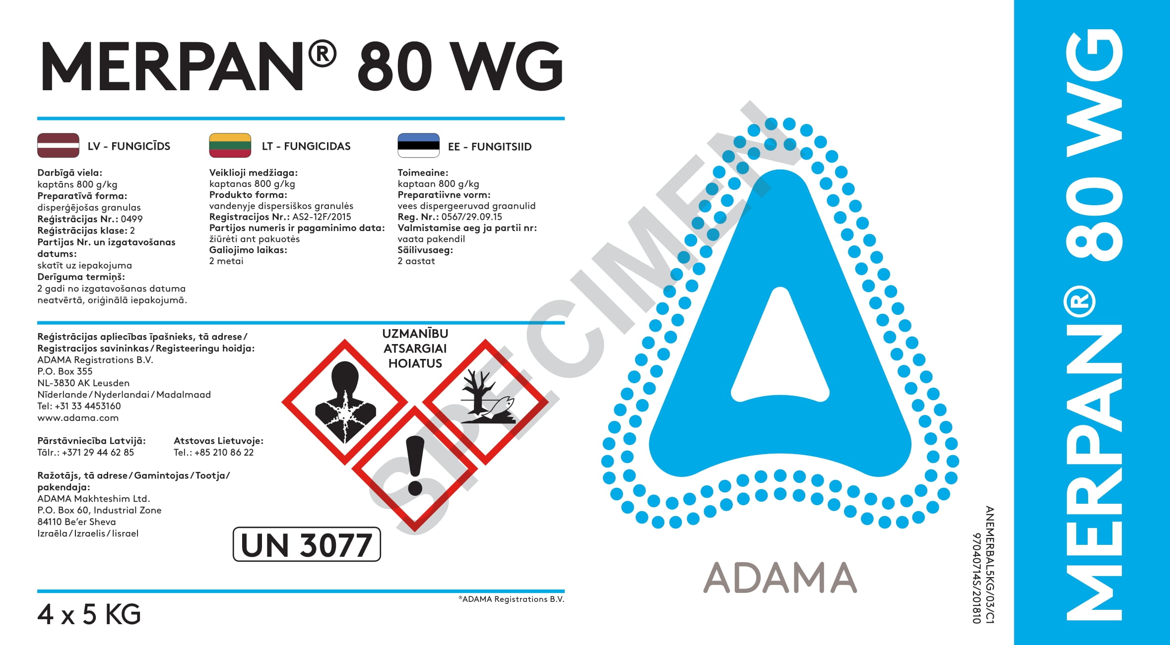 Merpan 80 WG yra plataus veikimo kontaktinis fungicidas skirtas obelų ir kriaušių apsaugai nuo rauplių bei vyšnių apsaugai nuo kokomikozės. Veiklioji medžiaga yra kaptanas. Kaptanas į grybo sporas ir grybieną patenka labai greitai, kylant temperatūrai šis procesas dar spartesnis. Merpan 80 WG pasižymi apsauginiu poveikiu, jis turi būti purškiamas profilaktiškai - prieš ligoms išplintant.