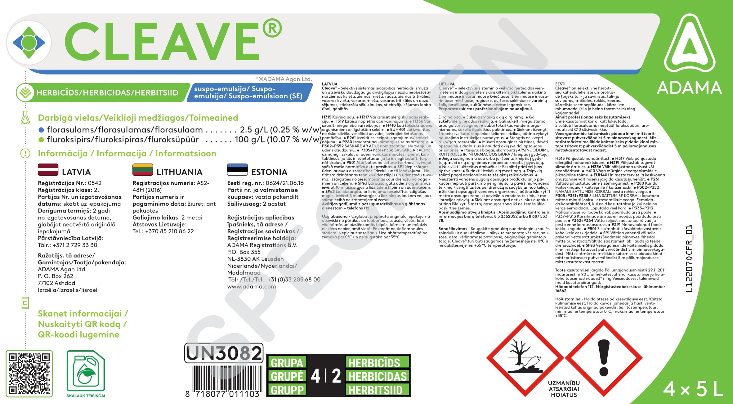 Cleave® yra suspensinė emulsija, kurios sudėtyje yra florasulamo 2.5 g/l ir fluroksipiro 100 g/l.