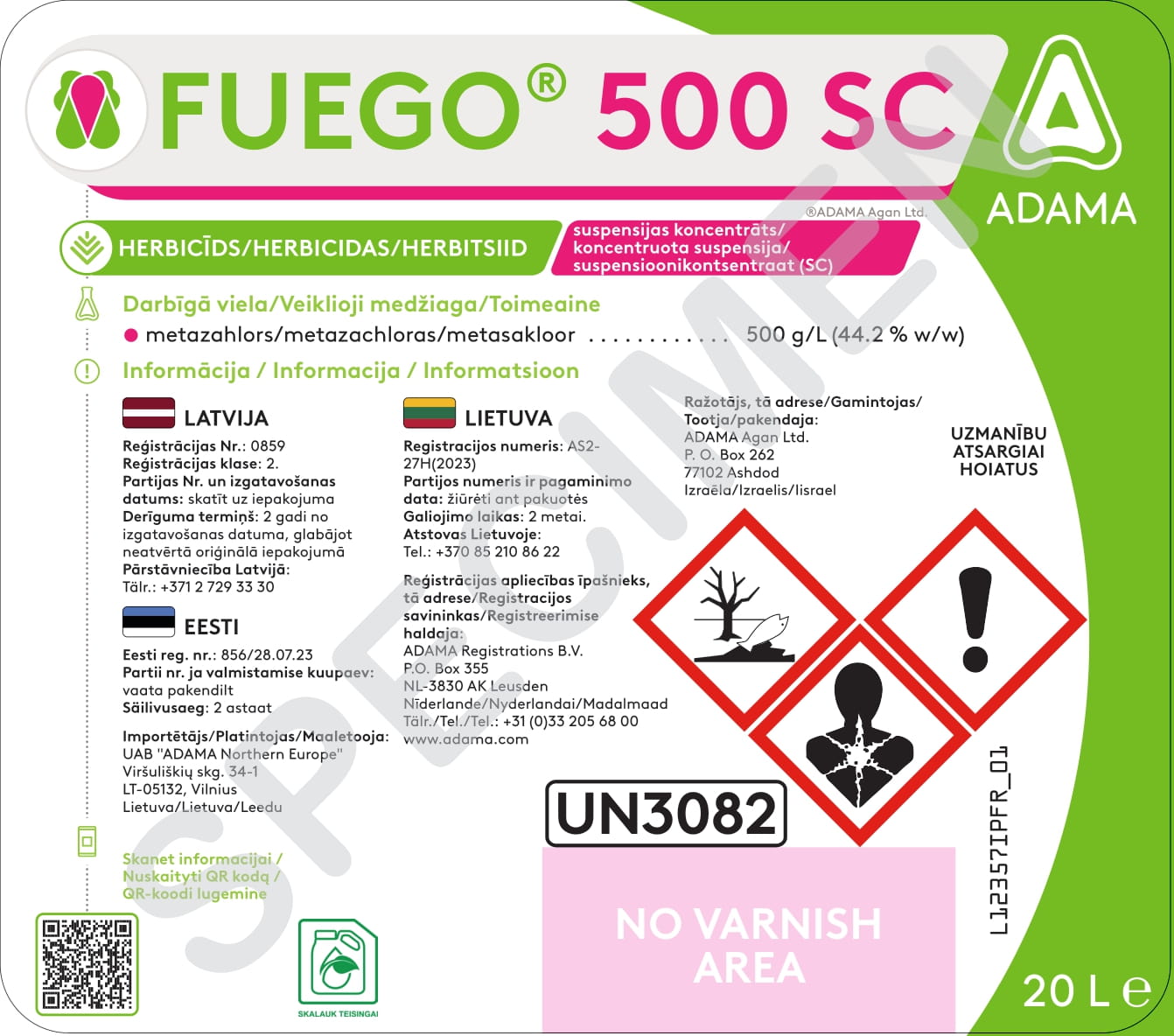 Fuego® 500 SC – sisteminis, dirvinis herbicidas,naikinantis dviskiltes ir vienametes vienaskiltes piktžoles, tokias kaip dirvines smilguoles ir vienametes migles, rapsų pasėliuose.