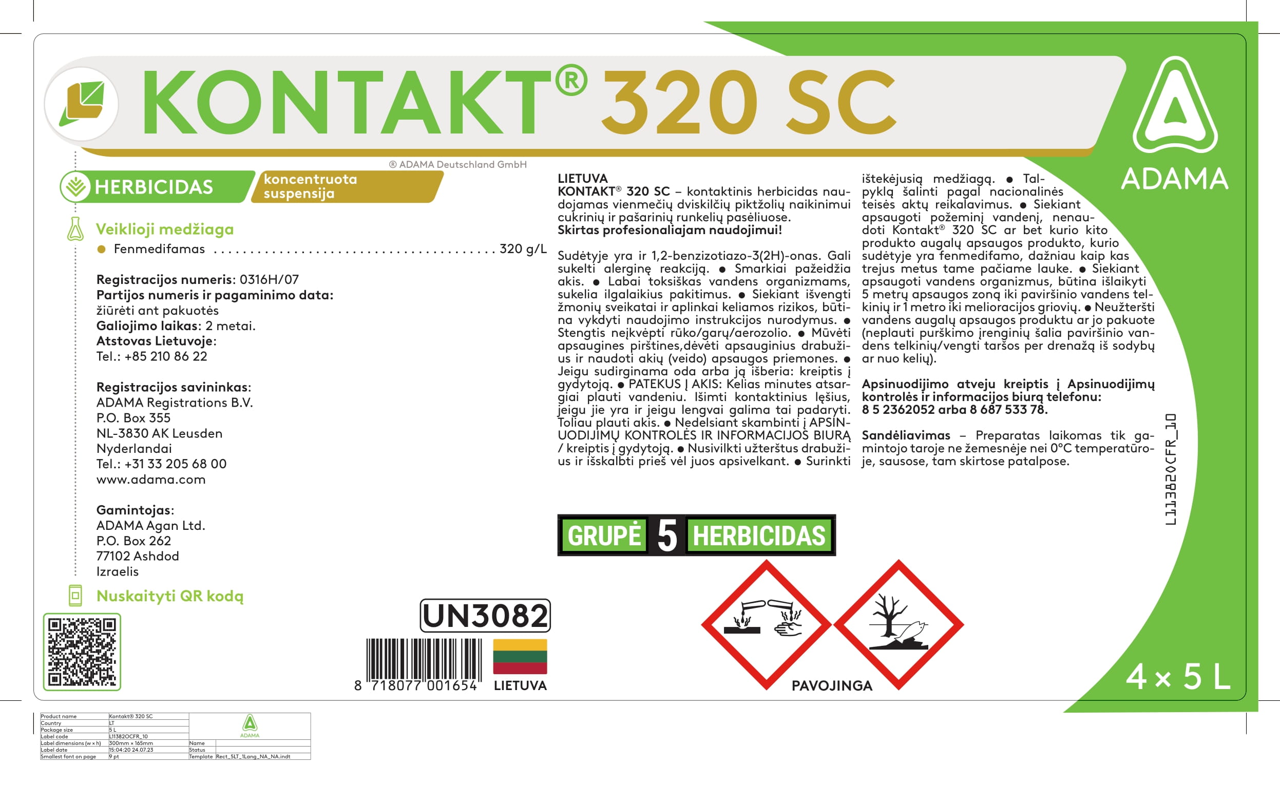 - Preparatas Kontakt® 320 SC purškiamas tik sureguliuotais, techniškai tvarkingais purkštuvais. Purkštuvas turi būti išplautas, švarus, kad jame nebūtų kitų cheminių medžiagų likučių. Naudojamas smulkialašis purškimo būdas.