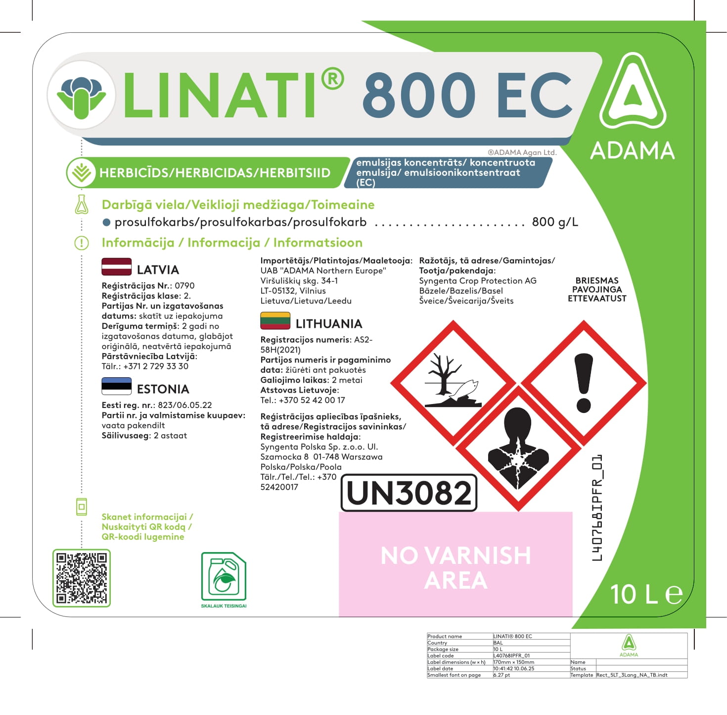 Linati® 800 EC patekęs į augalą, sustabdo lipidų sintezę, taip sustabdydamas ląstelių gyvybinius procesus. Naudojant produktą, kol piktžolės yra nesudygusios, produktas yra pasisavinamas per šaknis ir taip sustabdomas jų dygimas. Herbicidą panaudojus ant sudygusių piktžolių ankstyvame jų augimo tarpsnyje, produktas patenka per lapus ir labai greitai juda link augimo kūgelio, taip sustabdydamas piktžolių augimą. Kai kurios piktžolės gali sudygti, tačiau po kurio laiko jos sunyksta.
