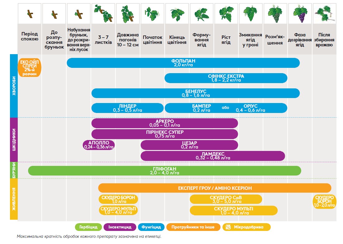 Схема захисту від бур’янів, хвороб, шкідників, продуктами ADAMA, а також застосування біостимуляторів та мікродобрив.