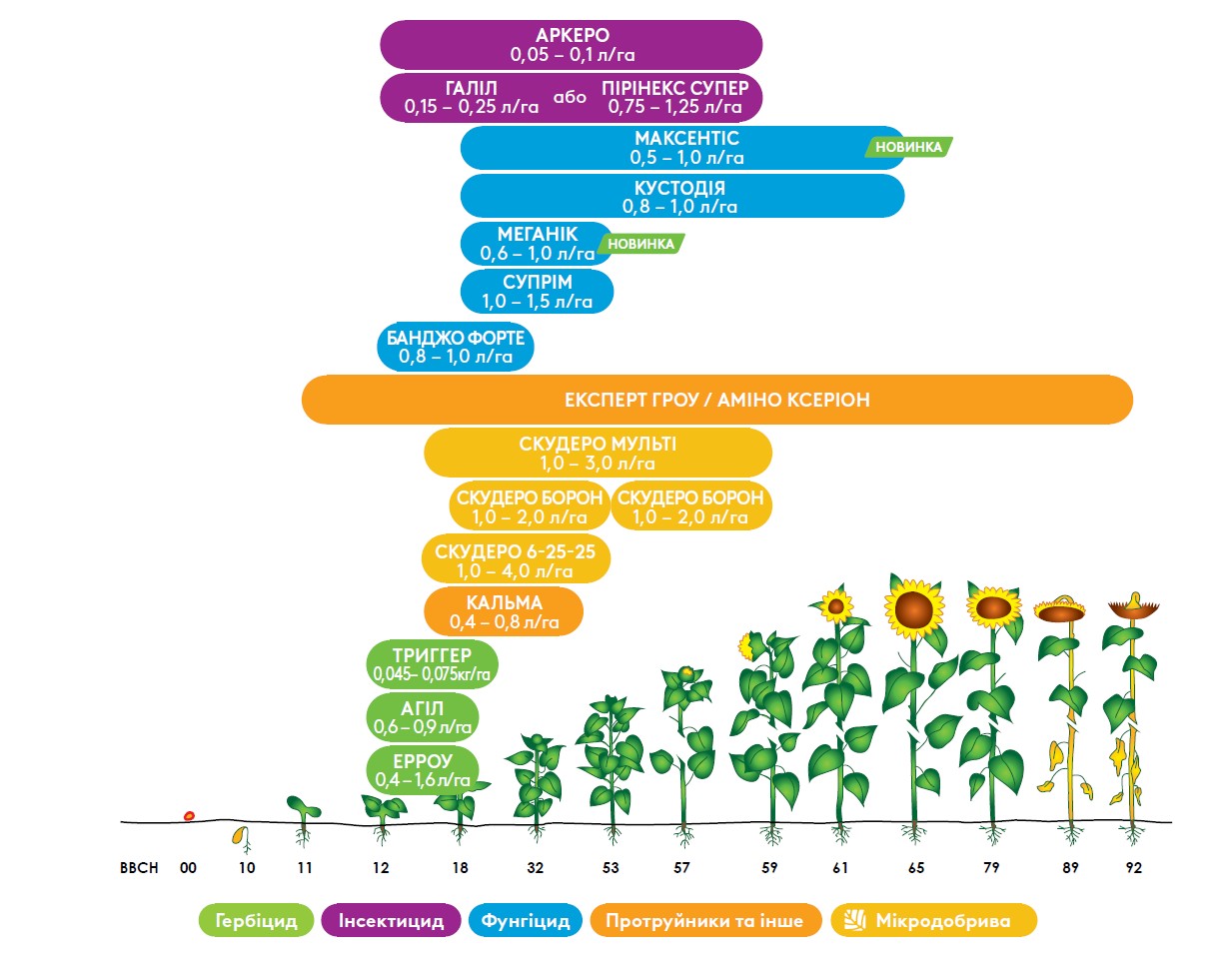 - Контактно-системний інсектицид для захисту соняшнику від широкого спектра шкідників.