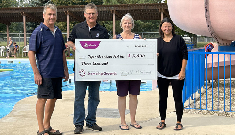 “We know facilities like swimming pools can provide a lot of joy to residents, especially in small towns,” said Gerald Hildebrand, Area Business Manager for ADAMA Canada. “Projects like this are why we wanted to create All In On Your Stomping Grounds, and we’re looking forward to using the fund to continue to help improve communities all over Canada.”